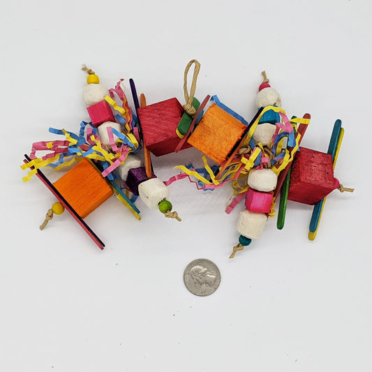 All are fantastic natural materials that are great for small birds and softer chewing larger birds! A favorite for many species, including quakers, conures, parakeets, budgies, and more. Even my Jardine's loves these woods! Soft woods can be a great introduction for birds that are scared of toys, or those learning to play.