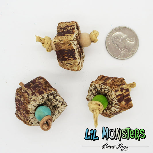The cork stoppers I offer are non-agglomerated, meaning it is natural and untreated. It does not have any glues and is a whole piece of cork. Cork Bark is actually made from the same trees as cork, but is from younger trees and contains more of the layers than cork stoppers do. This makes it a bit more of a chewing challenge than cork stoppers.