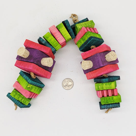 Hanging Toys are great for inside the cage, or putting on playstands. They tend to move a lot when hung, so this can be fun for some birds who like the challenge. If your bird seems fearful of hanging toys, try to lay them on the cage top, or clip them to the side of the cage. This helps them get used to the toy on their own terms!