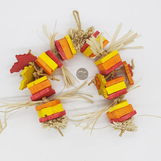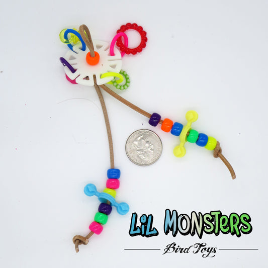 Hanging Toys are great for inside the cage, or putting on playstands. They tend to move a lot when hung, so this can be fun for some birds who like the challenge. If your bird seems fearful of hanging toys, try to lay them on the cage top, or clip them to the side of the cage. This helps them get used to the toy on their own terms!