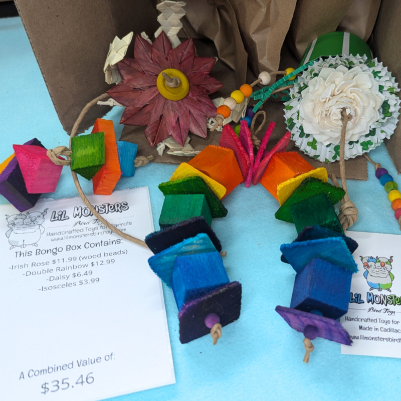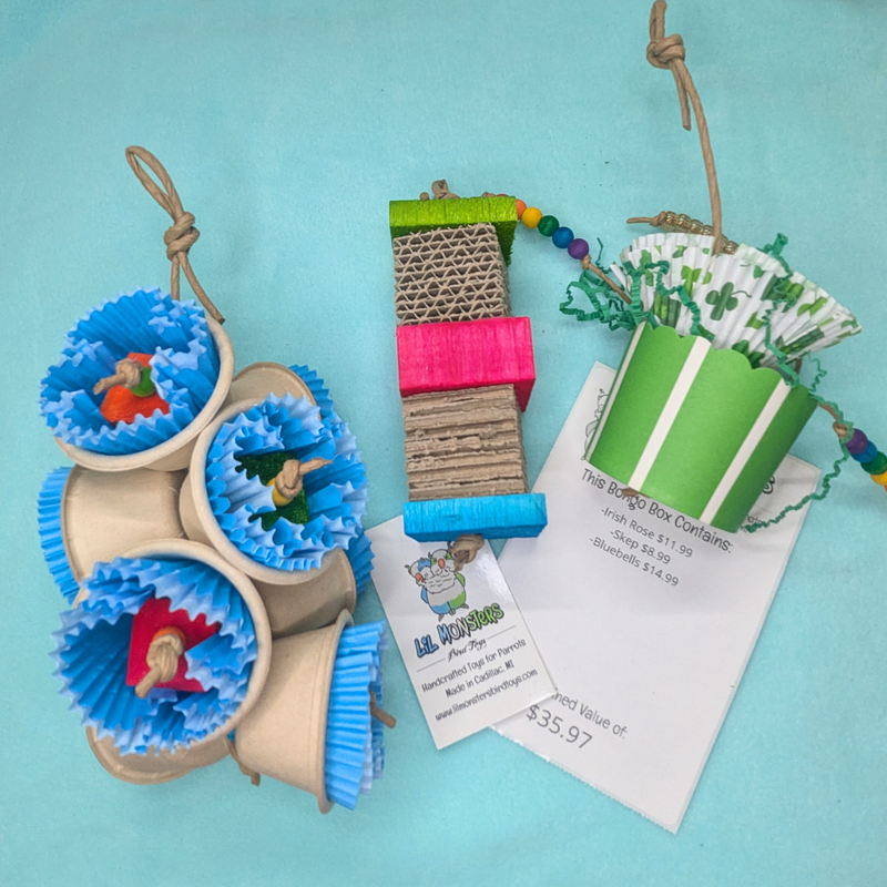 Bongo Box is a personalized mystery toy box made just for your flock. Each box is customized based on your bird’s play style, preferences, and your budget.