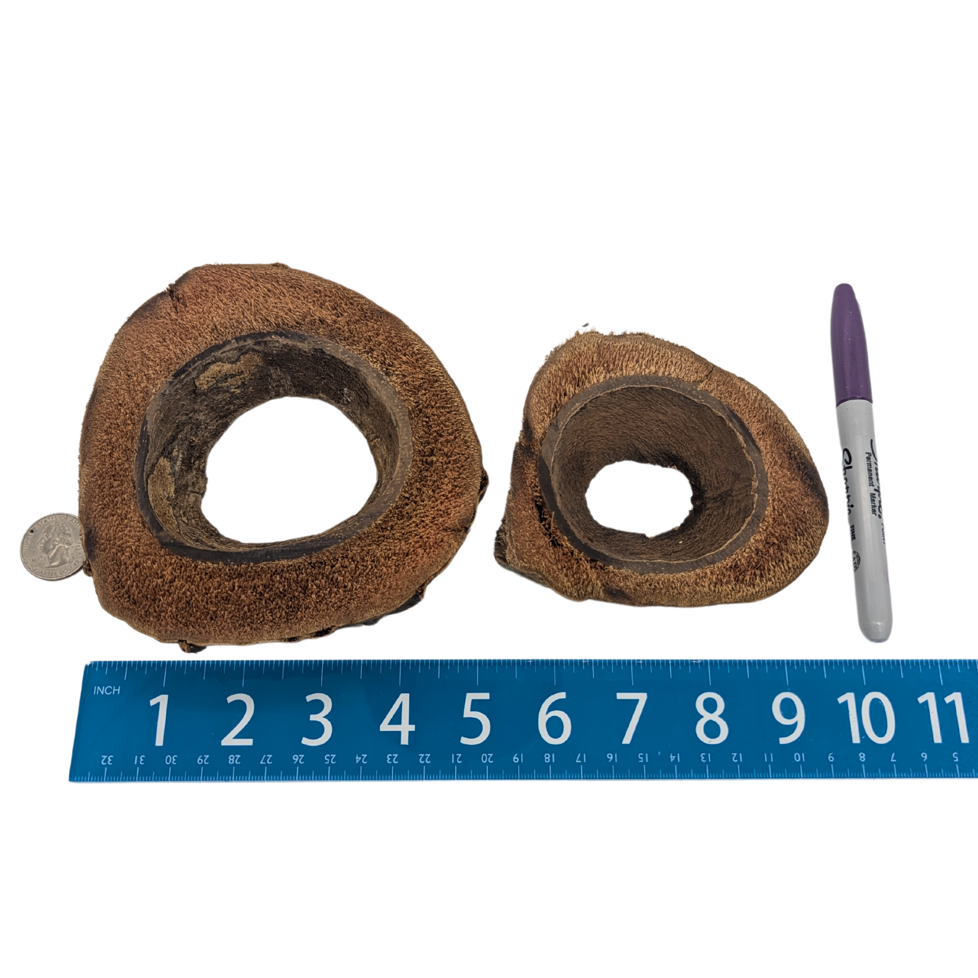 A cross-slice of a Coconut with the husk bird love to shred and chew. Sizes and shapes vary but they are approximately 1" thick and 5" across.