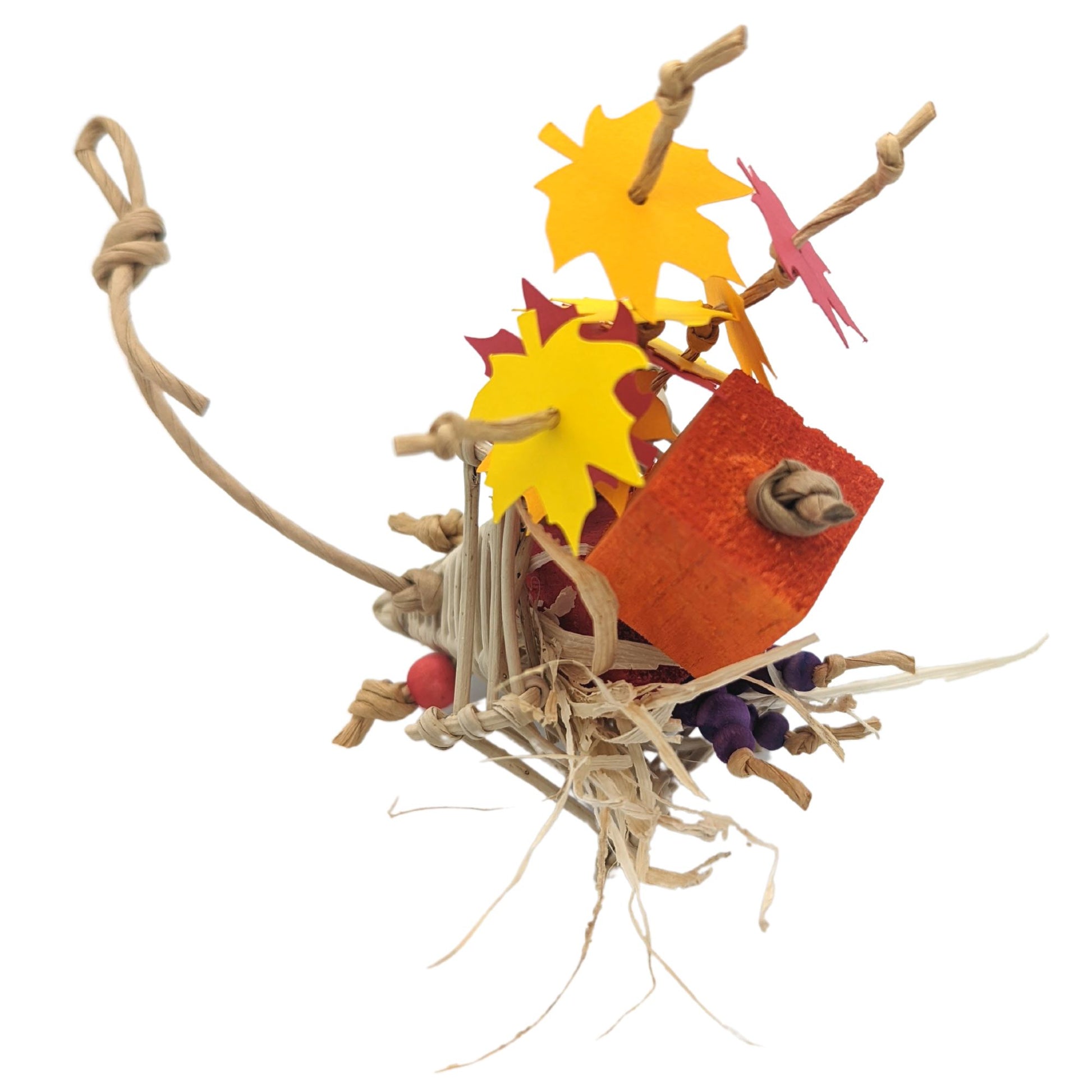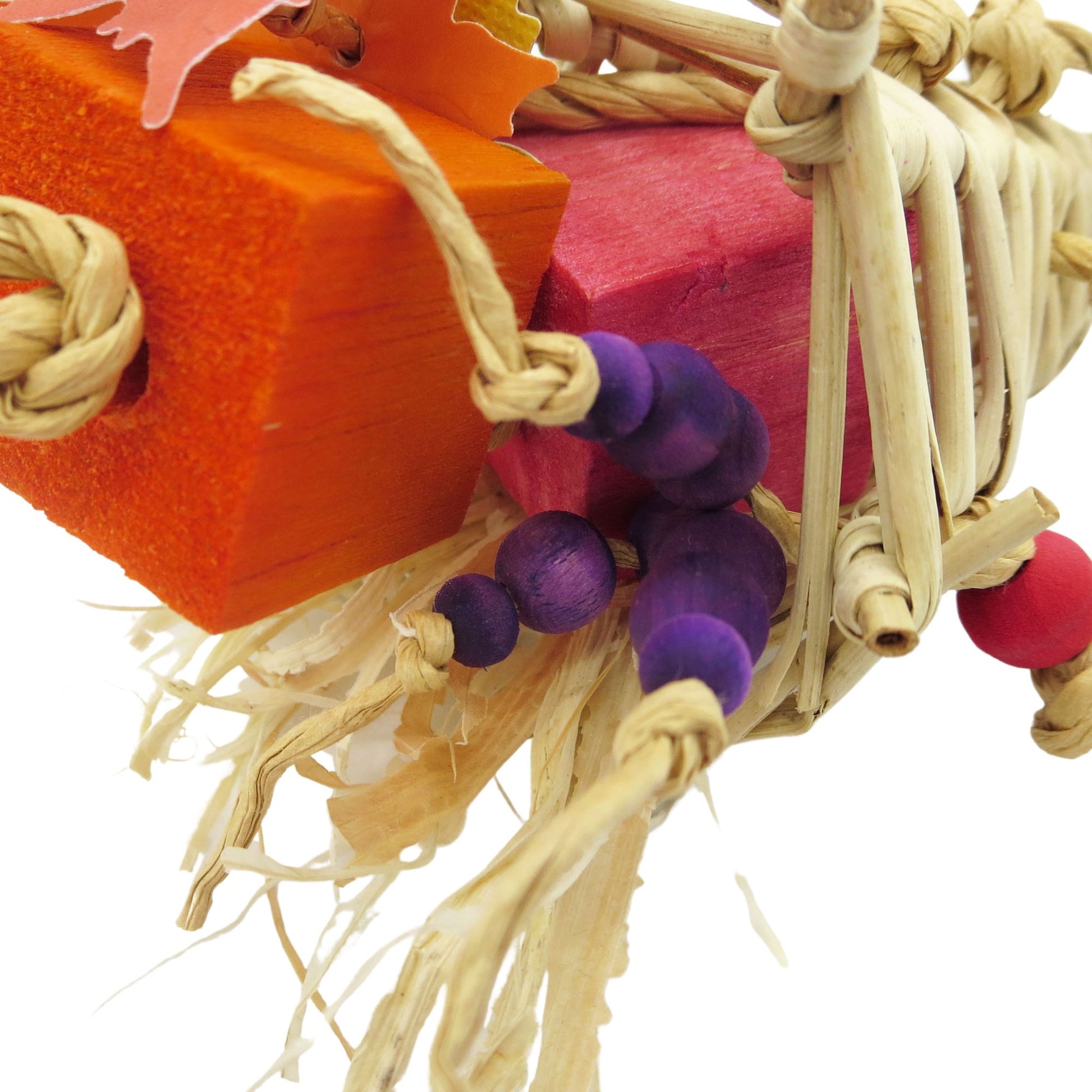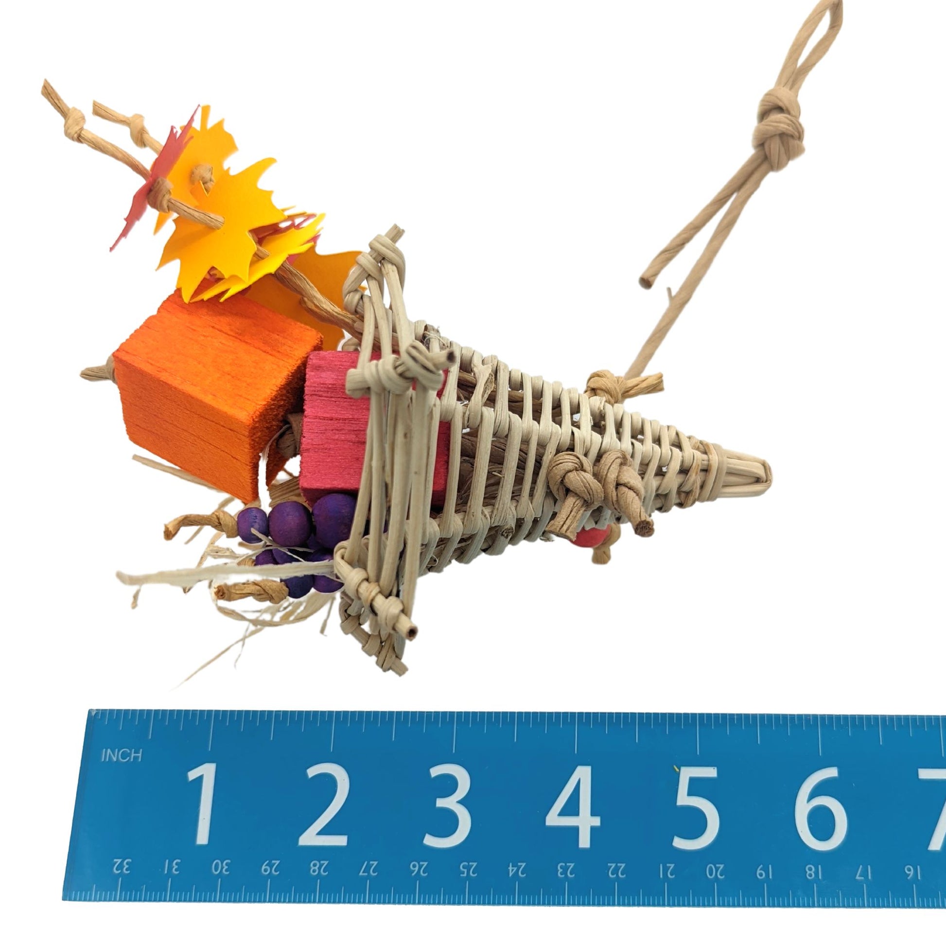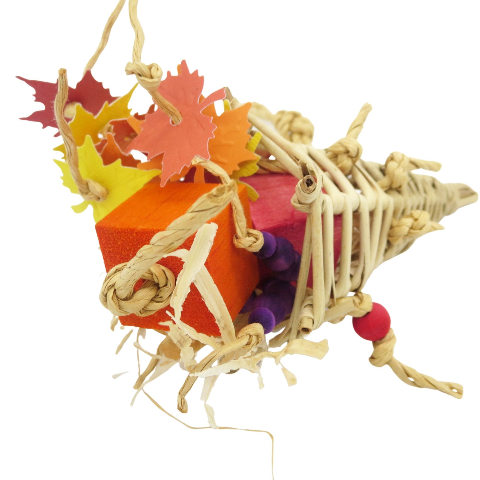 Shannan Our conure hasn't found a toy yet that he doesn't love. The Cornucopia is one he loves to hang off of and play with. It also looks very festive in his cage.