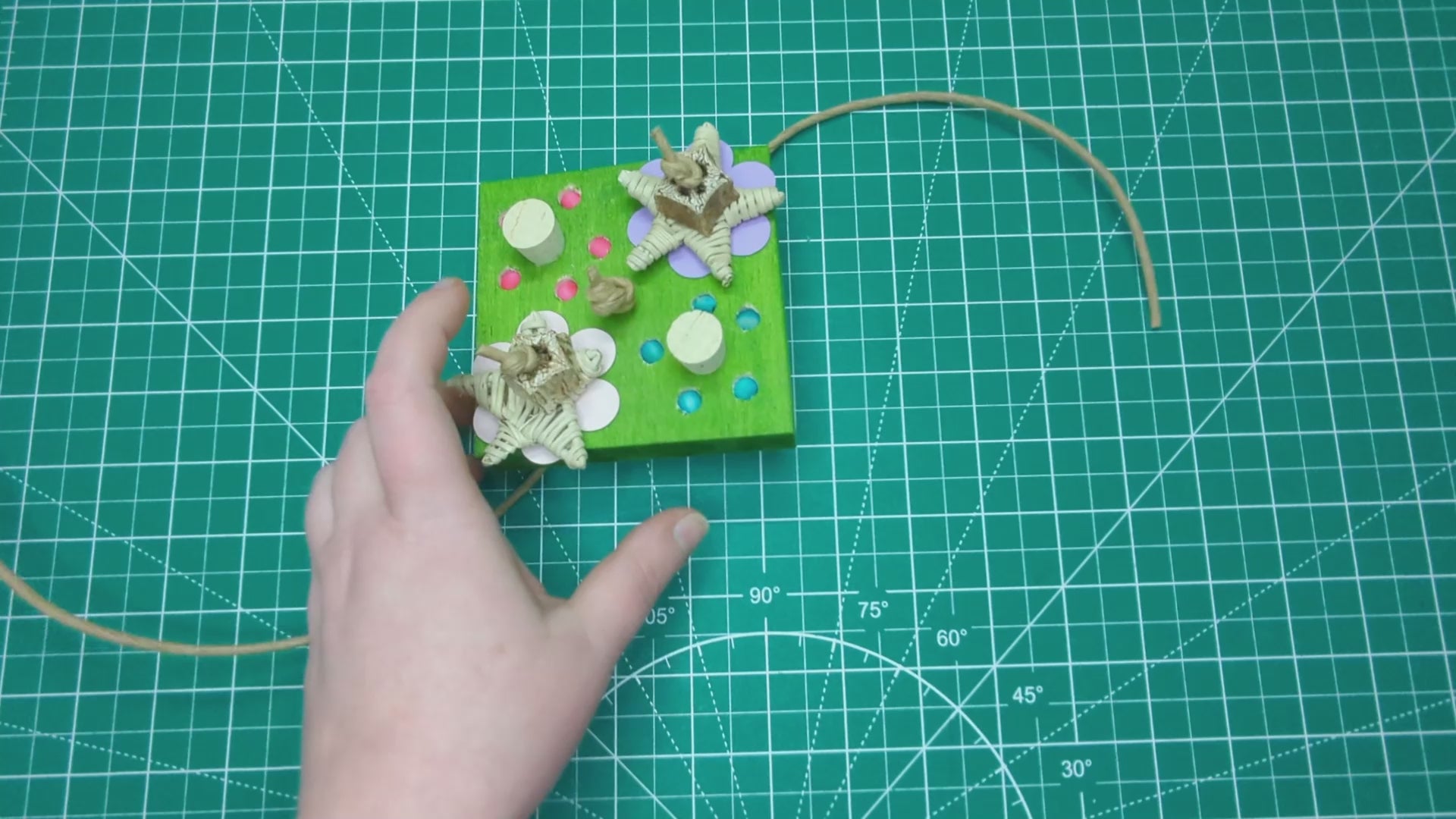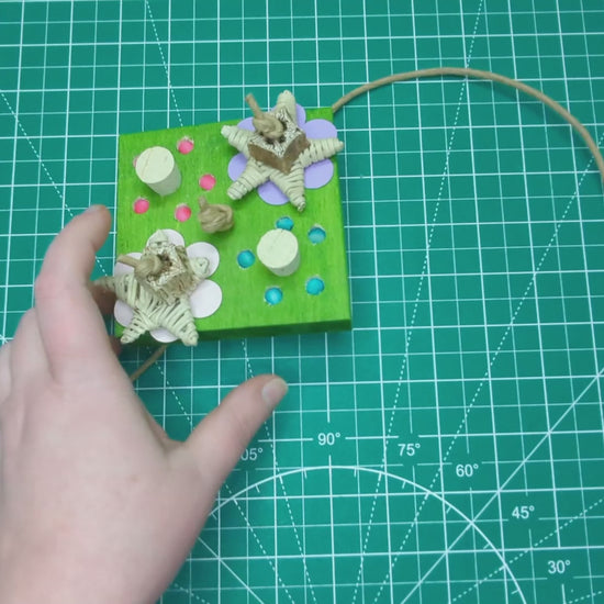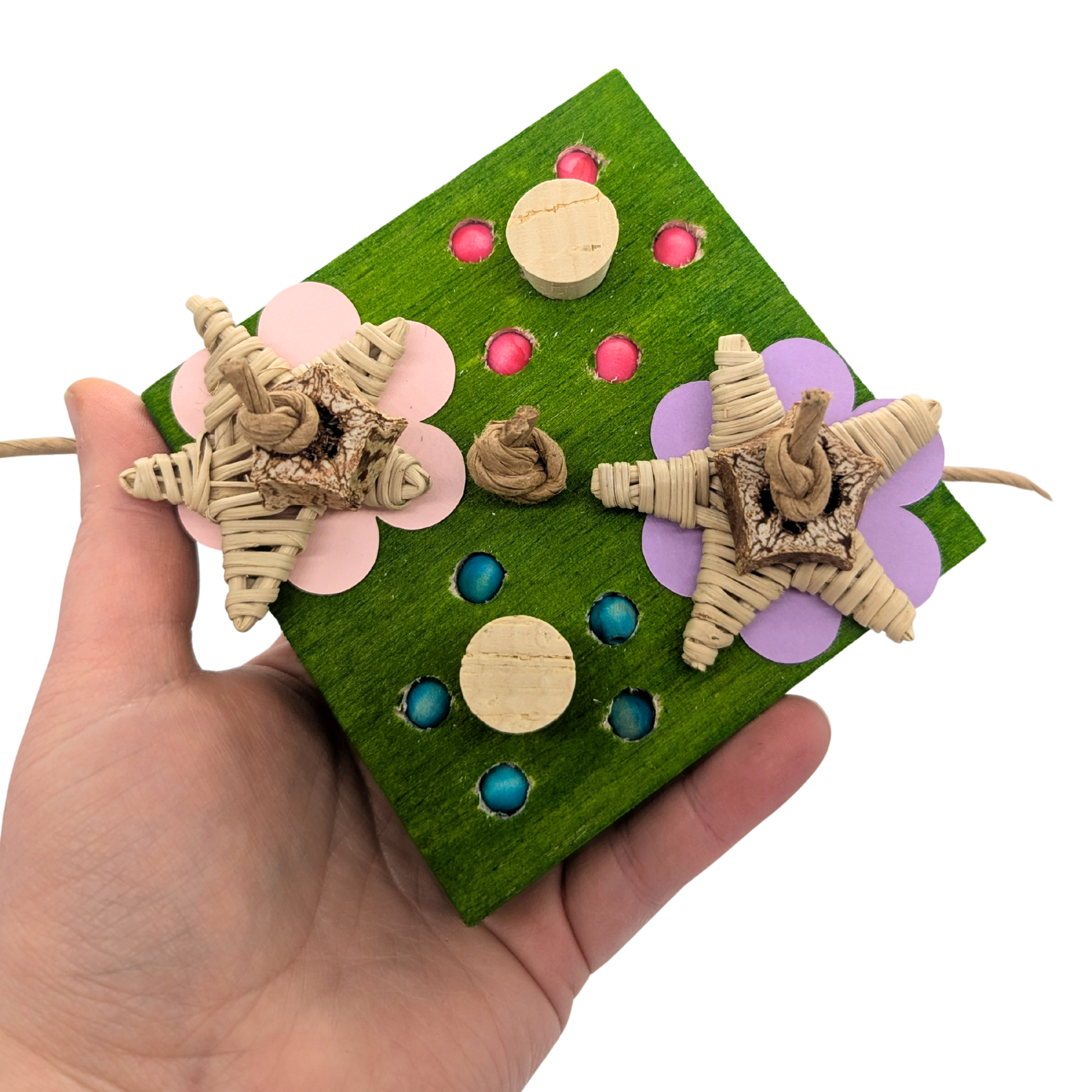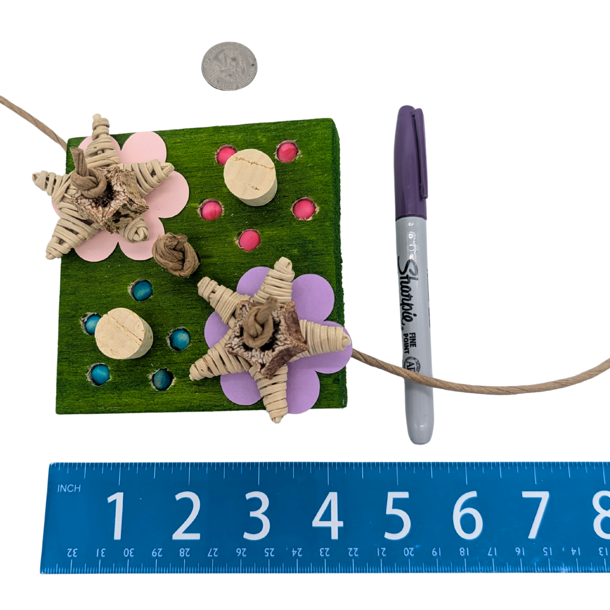 On a 4x4 base are flowers made of corks, vines, and mahogany pods, with your choice of millet or beads!
