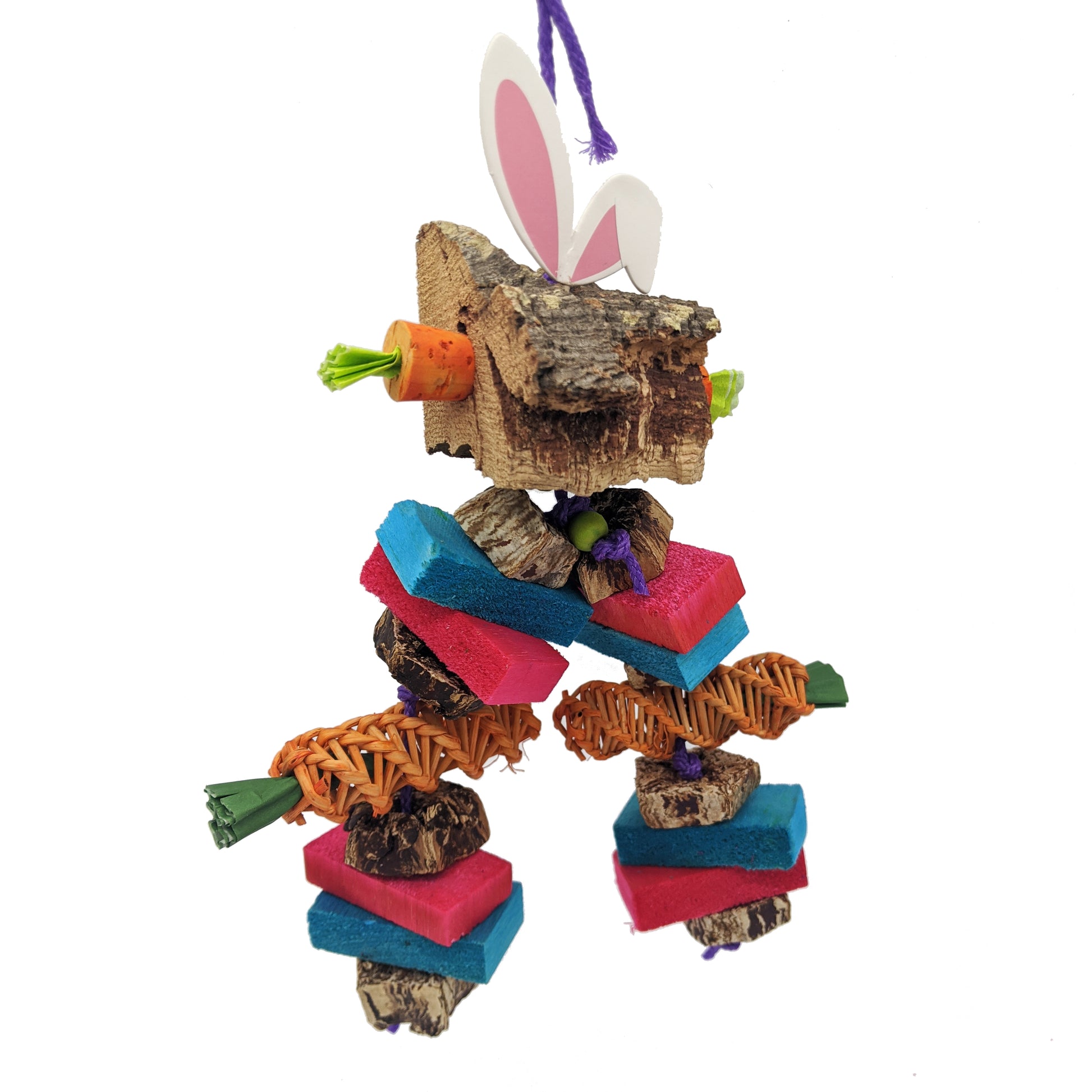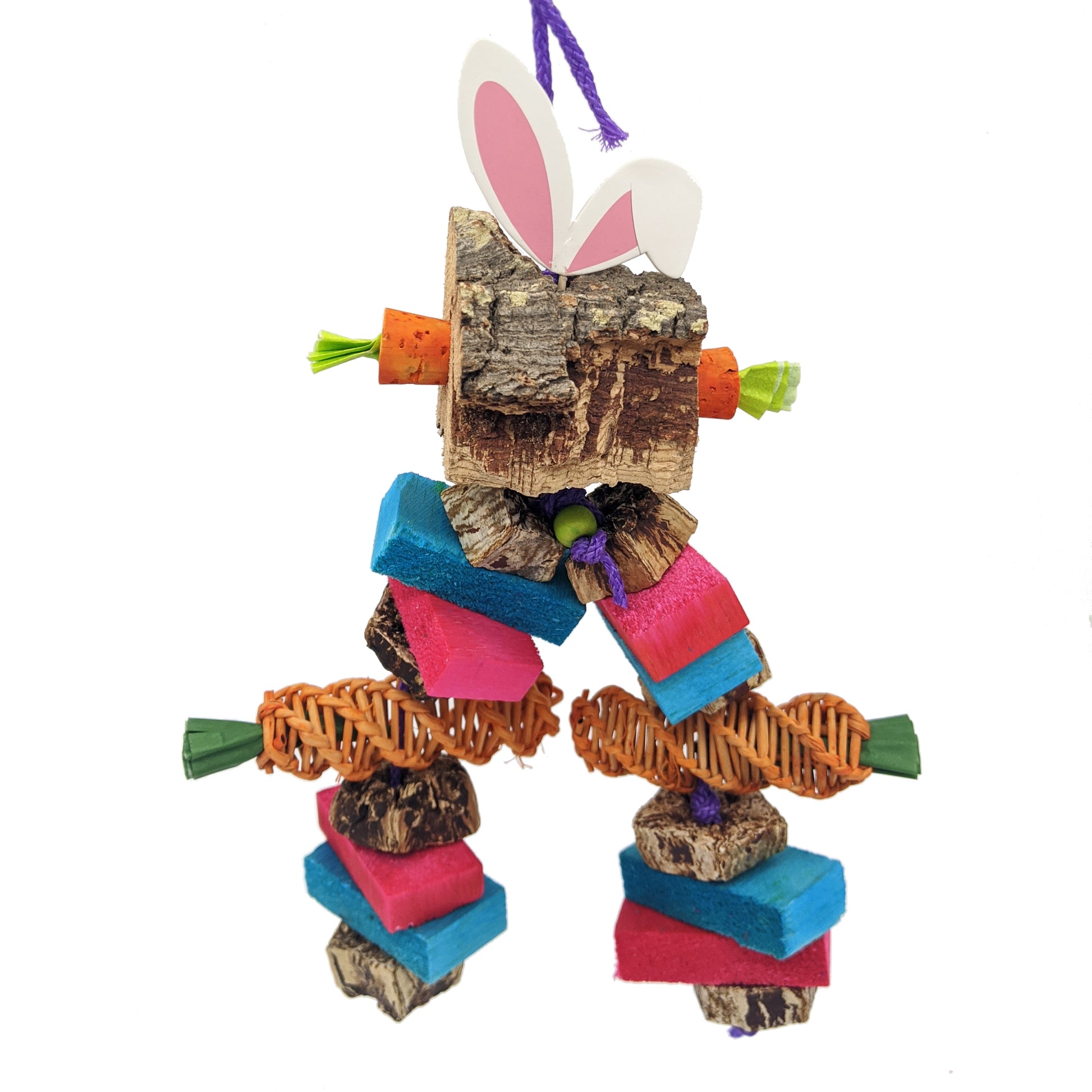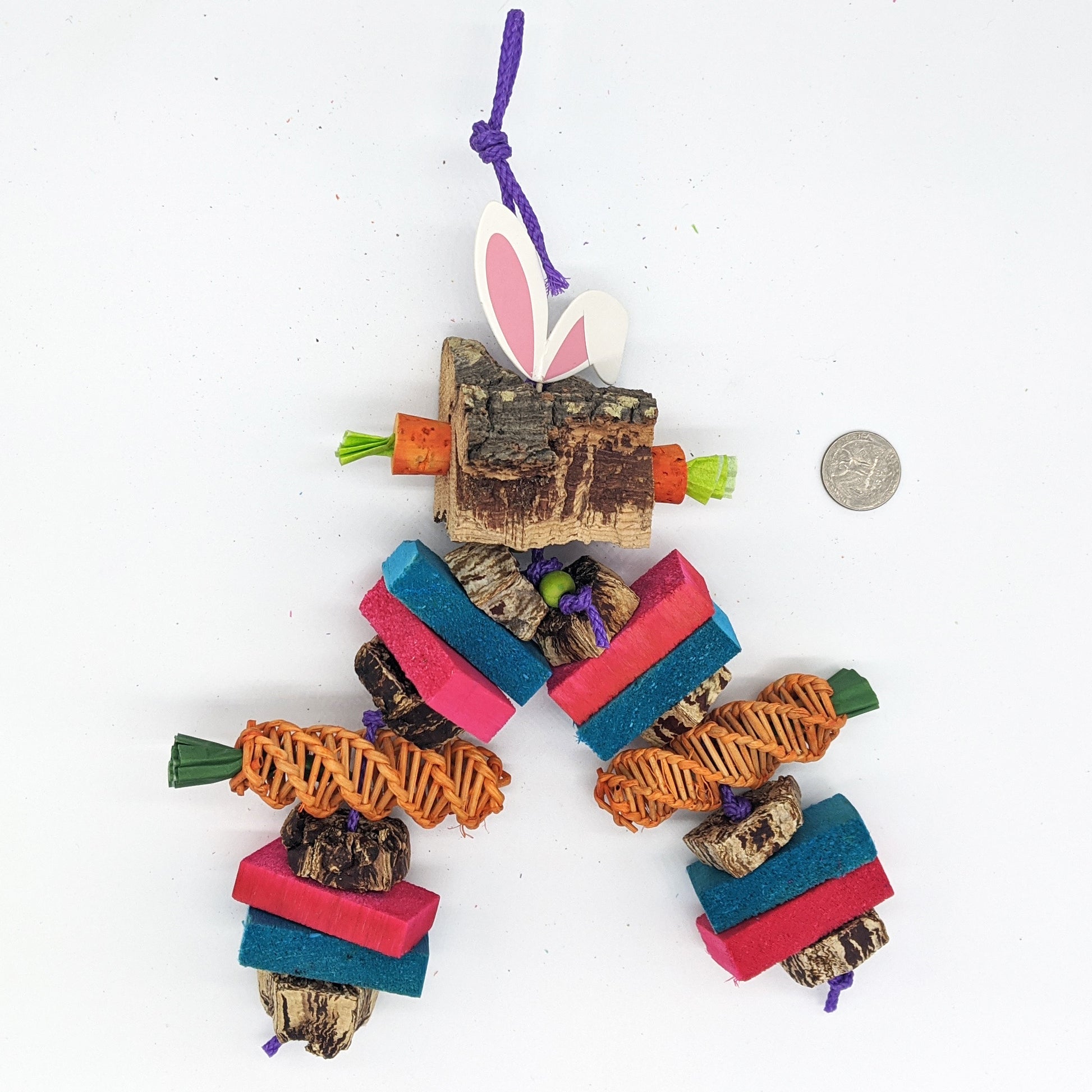 Little bunny Foo Foo doesn't want to be seen! His ears poke up out of the cork bark ground, waiting to chew on the cork and vine carrots, balsa, and mahogany pods that await him!