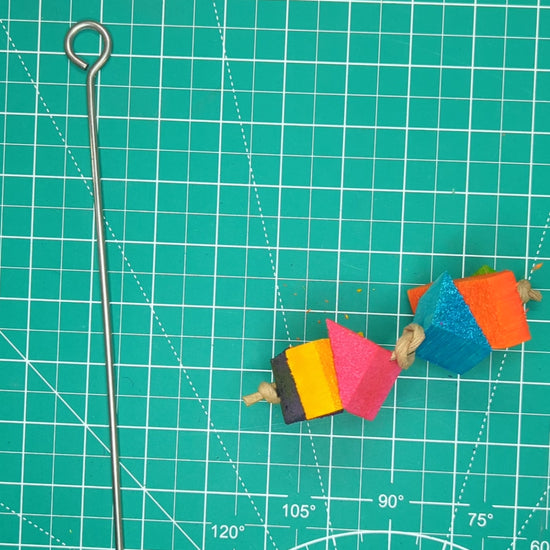 What's a skewer filler? A skewer filler is a mini toy that is designed so that it can be simply strung onto a stainless steel skewer to create a full toy. It lets you customize an entire toy for your bird!