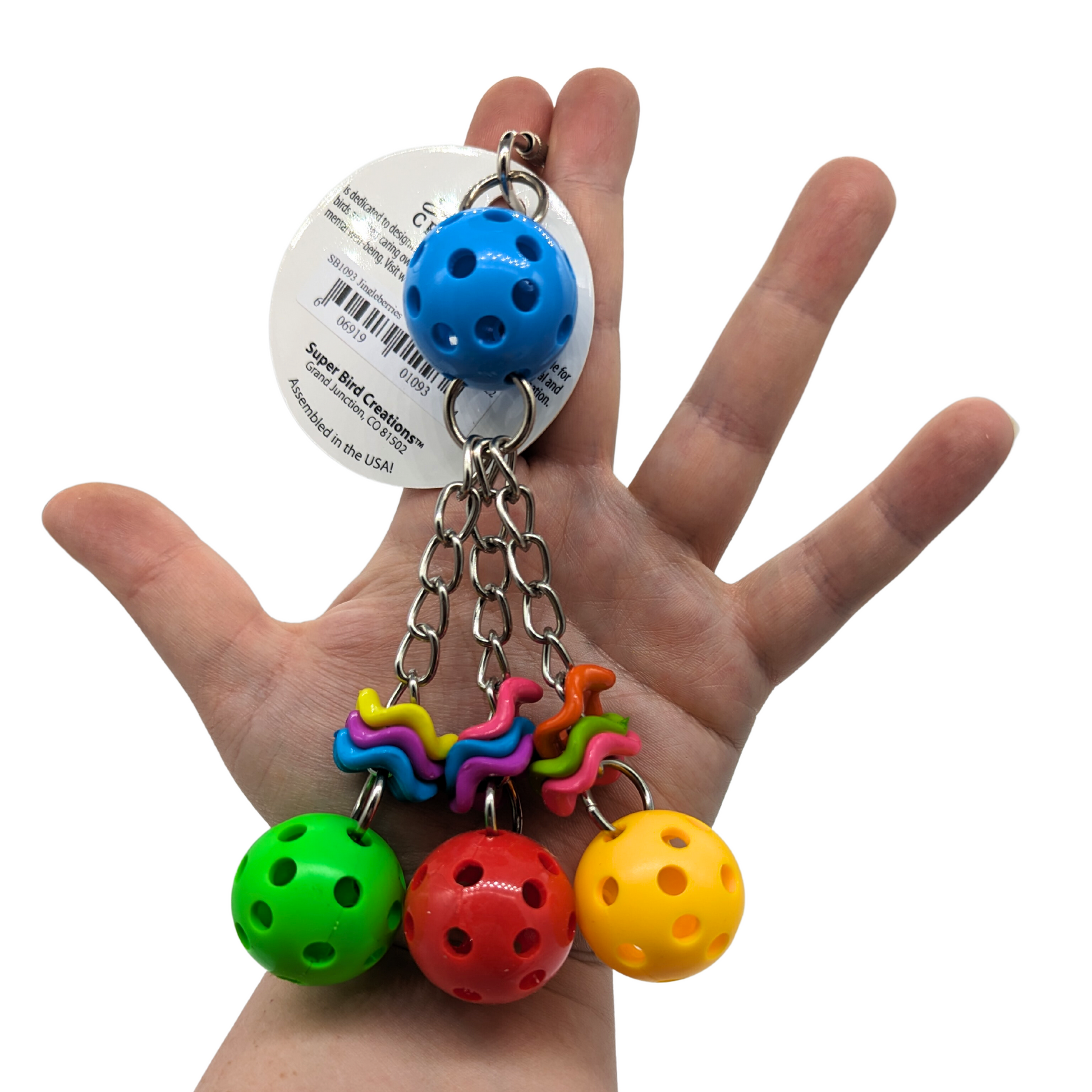 The Jingleberries bird toy is made with 4 colorful gumballs and lots of wiggle rings that unite to offer lots of action.