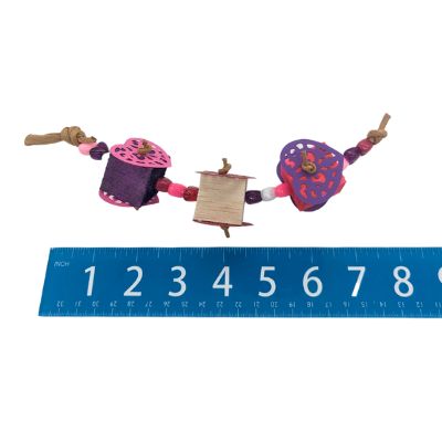 Niko I think this has been our green cheek’s favorite toy from Lil Monsters so far! He had lots of fun tearing apart the balsa and ripping off the paper hearts. Unexpectedly, he also enjoyed climbing onto the toy and swinging like a monkey; as well as chewing the end of the paper rope off and pulling off the beads.