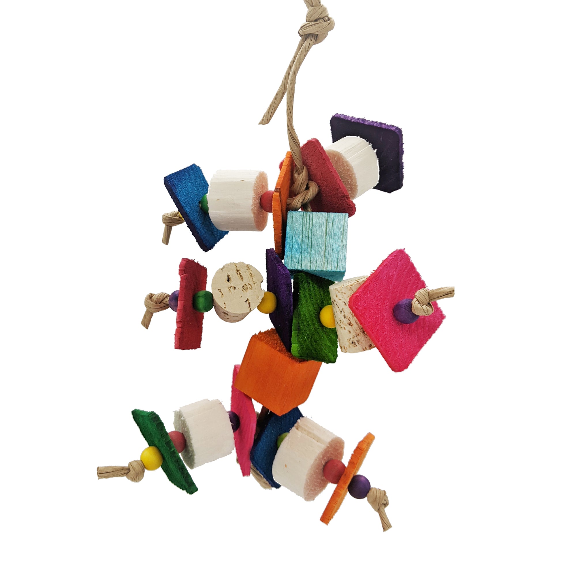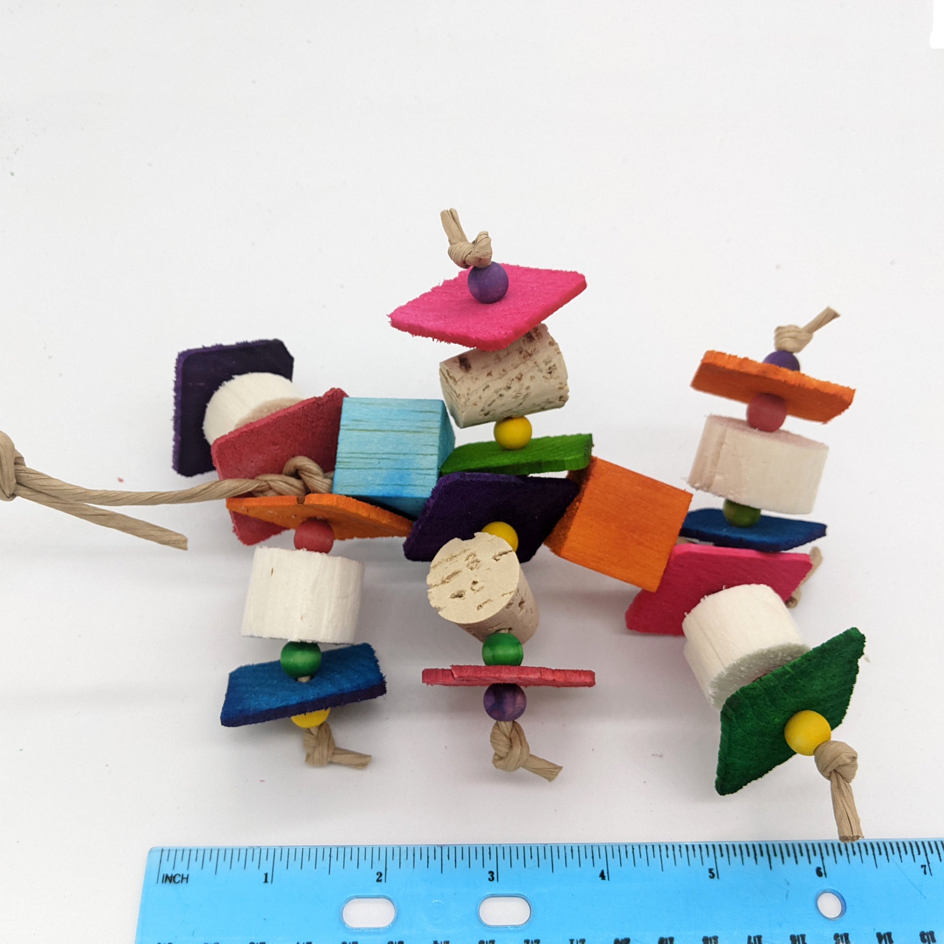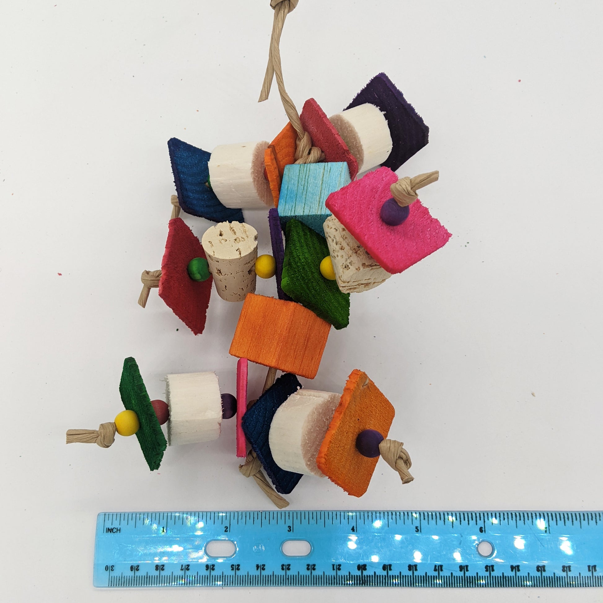 With 1/8" pine, sola chunks, balsa, and cork, this toy is a lot of fun for birds that like softer materials!