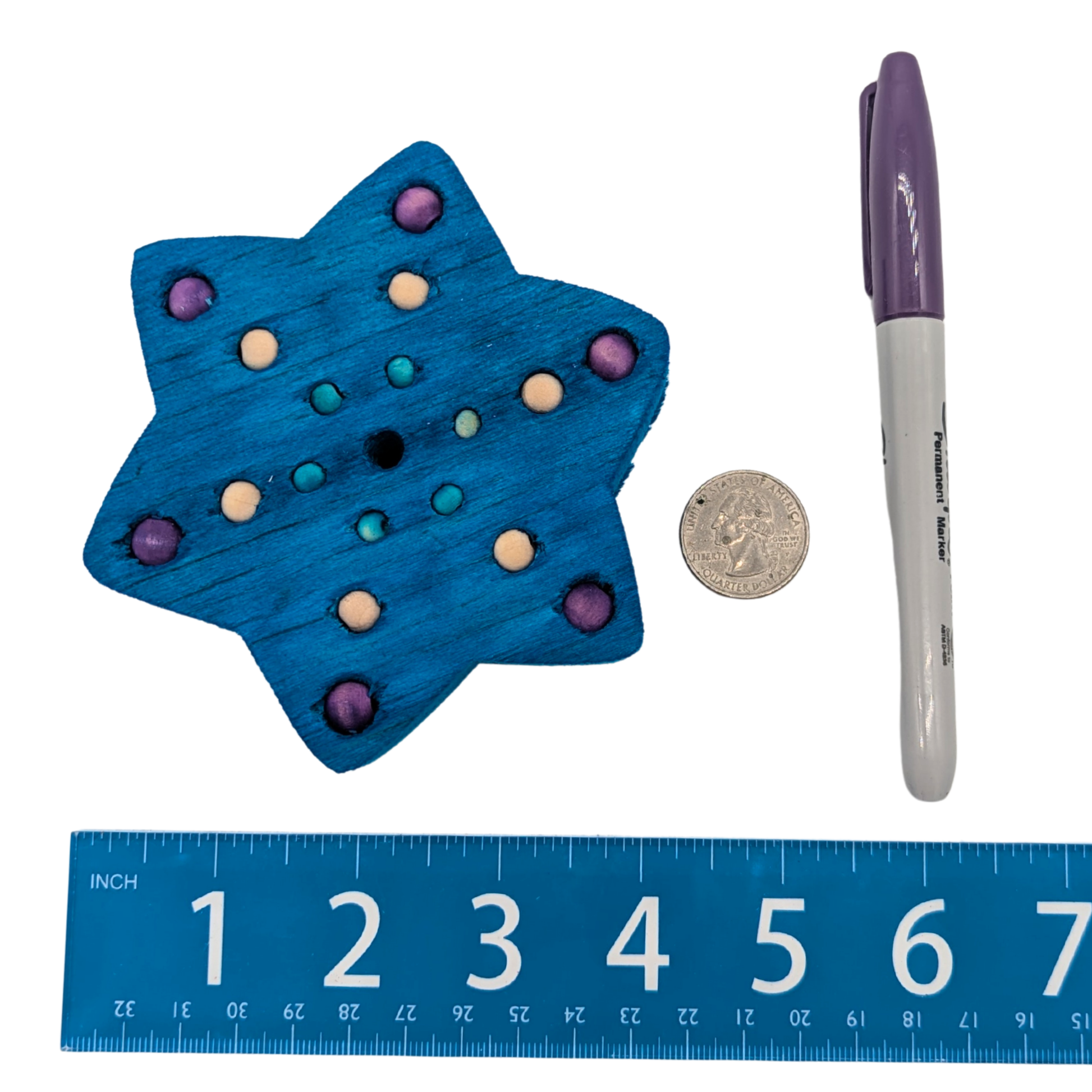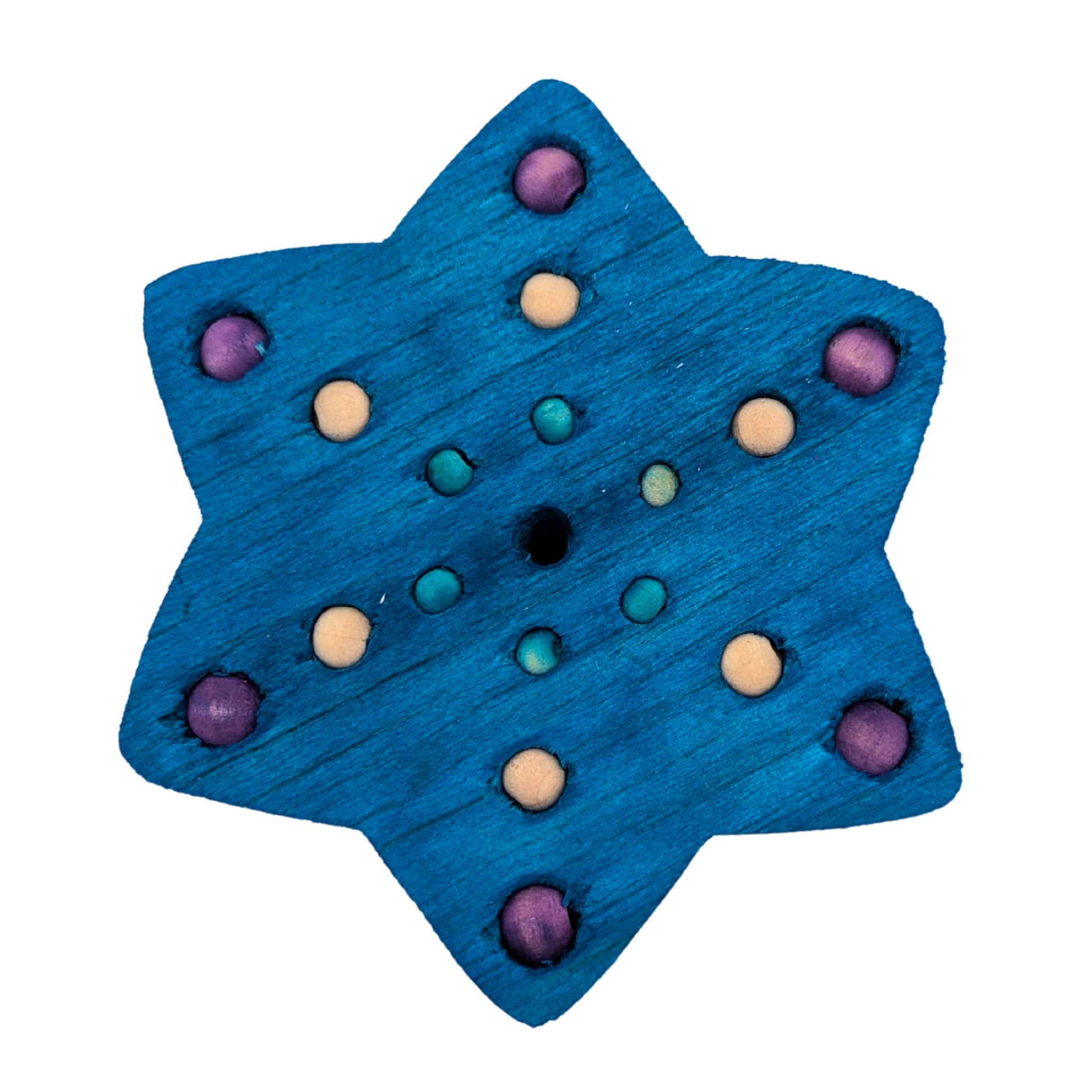 With 3/4" balsa or pine, embedded 10mm, 8mm, and 6mm beads, and strapped to the side of the cage with paper rope or stainless steel hardware, this is sure to be a favorite!