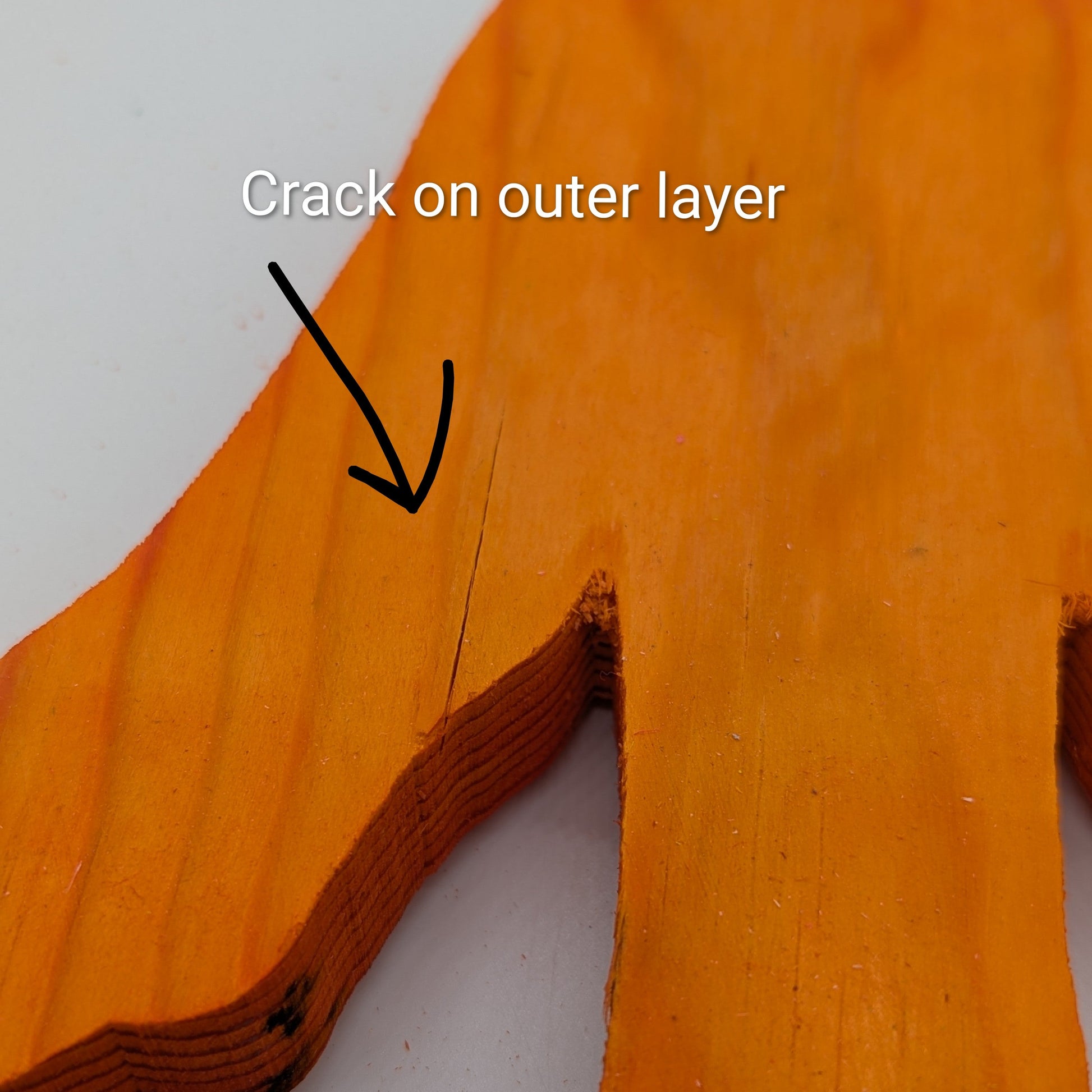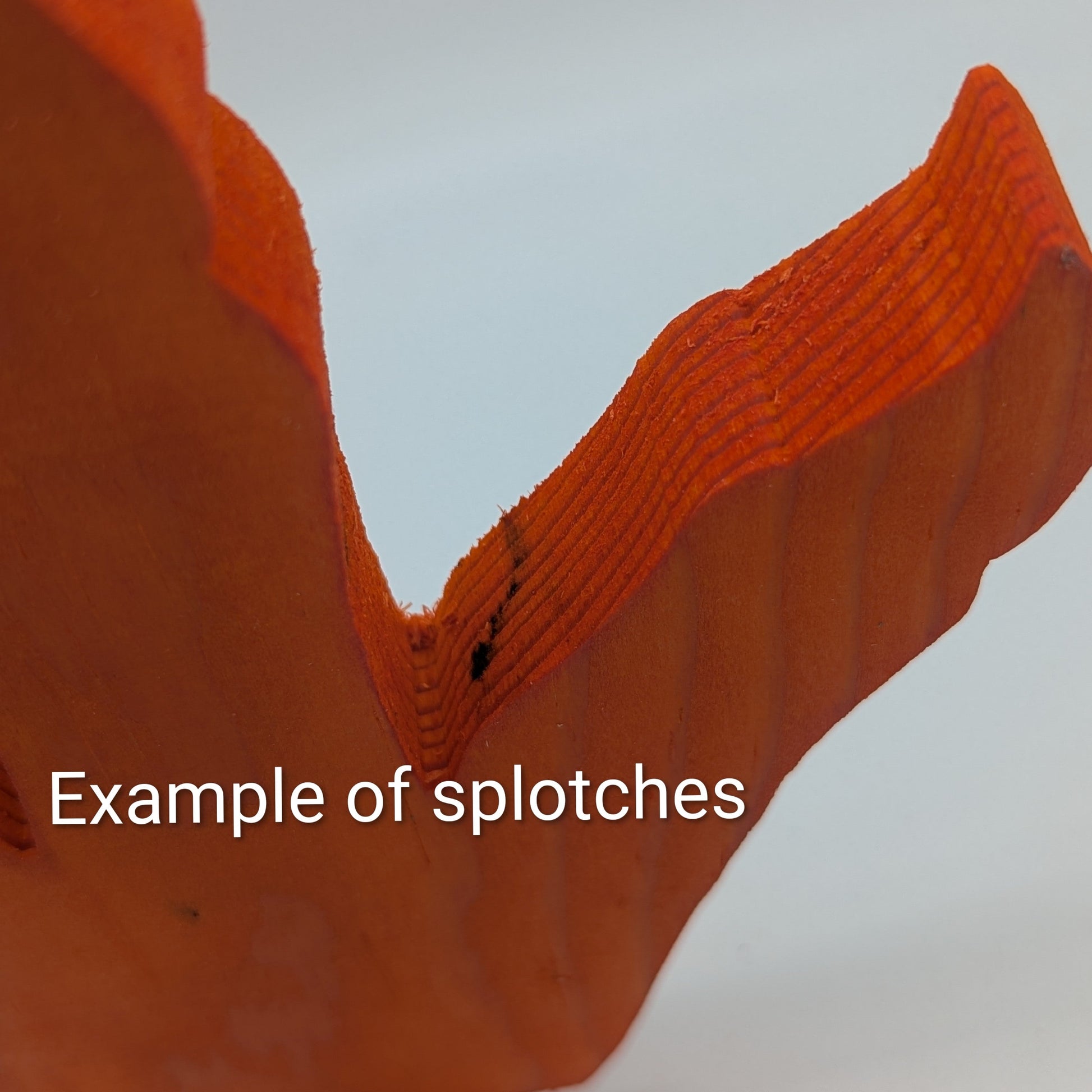This is a seconds quality item and being sold at a discount. This perch has a small crack in the outer layer of wood and has an imperfect dye (some splotches of another color). It is dyed orange.